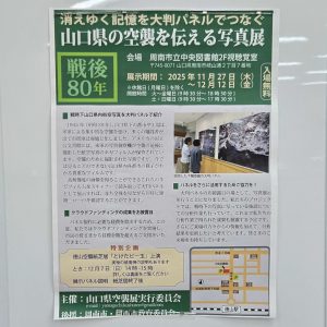 - 戦時下の山口県内の航空写真を大判パネルで展示しています。