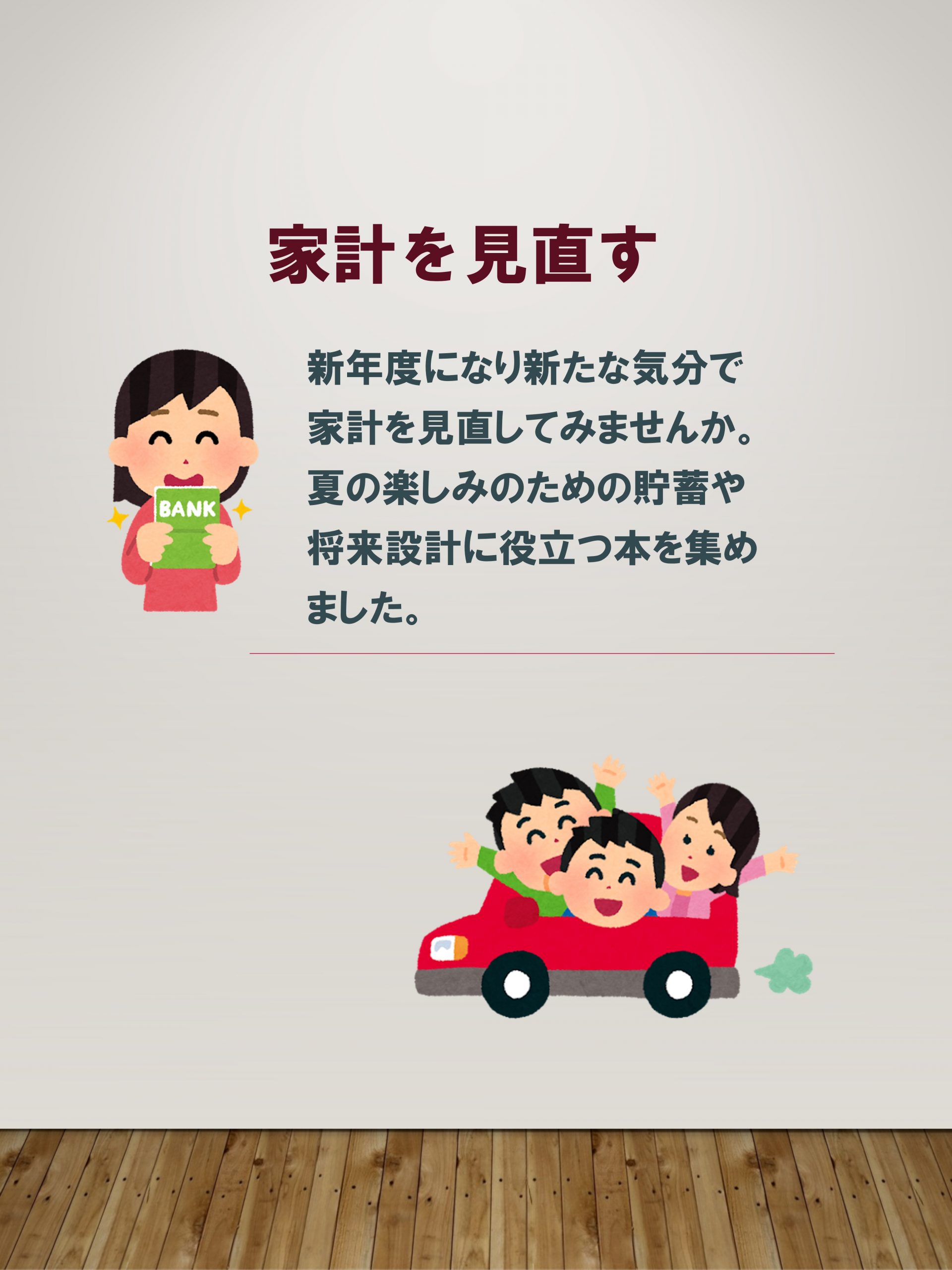 | 内容 | 新年度になり、新たな気分で家計を見直してみませんか? 夏の楽しみのための『貯蓄』や、『将来設計』に役立つ本を集めました! |