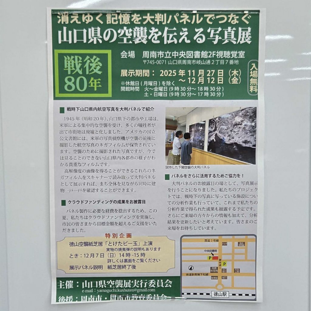 戦時下の山口県内の航空写真を大判パネルで展示しています。